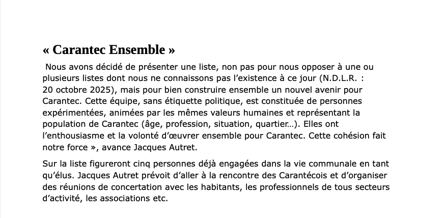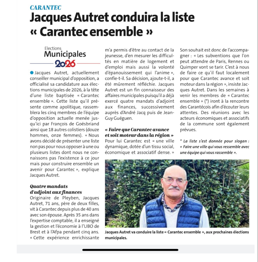 Article « Le Télégramme » du 20 novembre 2025
