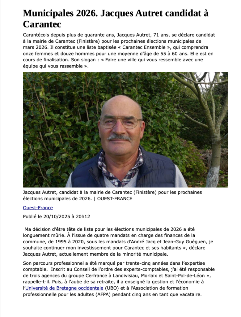 Article « Ouest France » du 20 octobre 2025